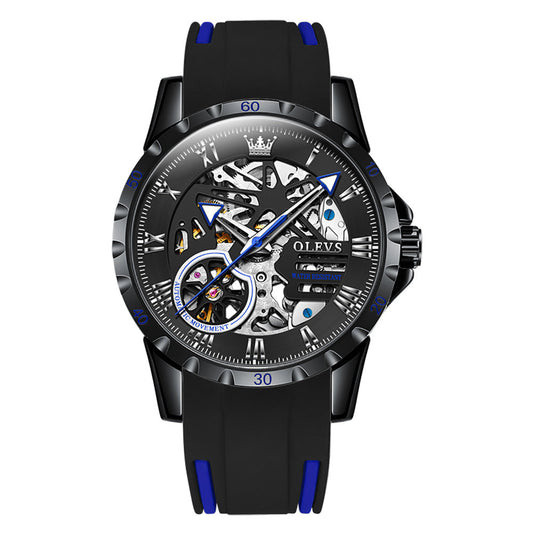 Glow-in-the-dark Waterproof Silicone Watchband Stereoscopic Hollow Mechanical Watch