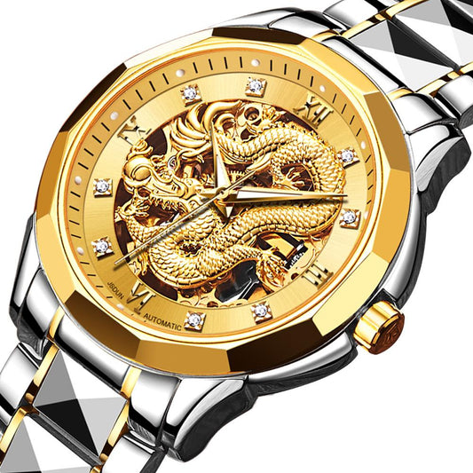 Dragon Skeleton Automatic Mechanical Watches For Men Wrist Watch Stainless Steel