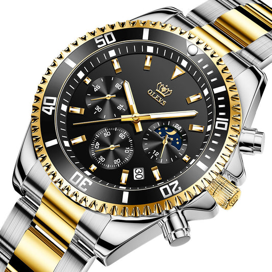 Multifunctional Chronograph Three Eyes Green Water Ghost Waterproof Men's Watch Quartz Watch