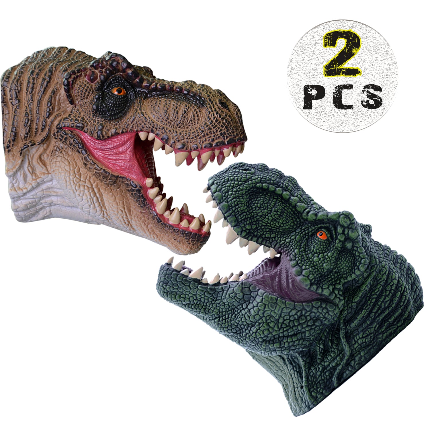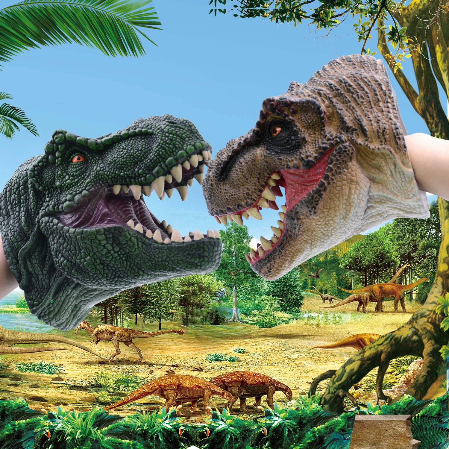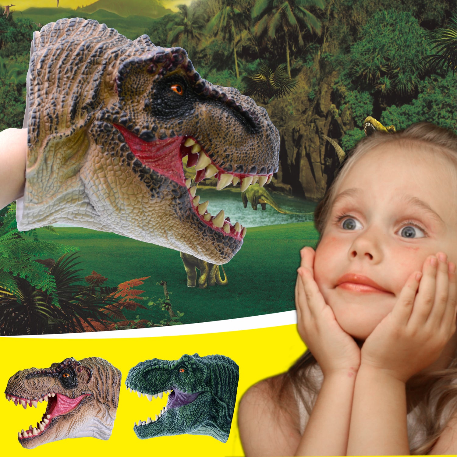 Dinosaur Hand Puppet Rerealistic Soft Rubber Toy Dinosaur Head Glove Toy For Boys And Girls(2 PCS)