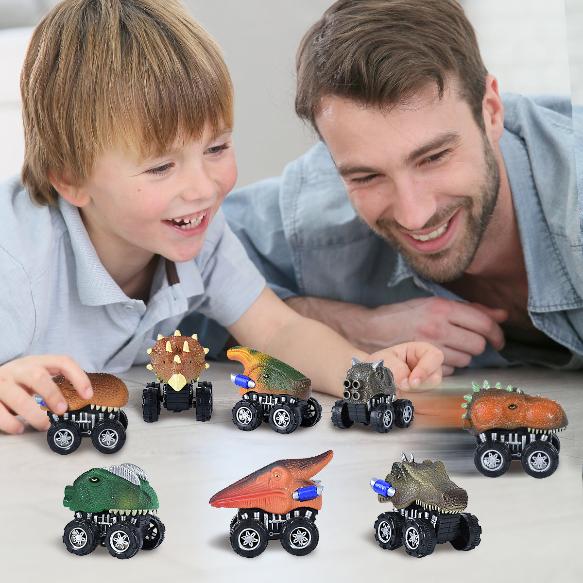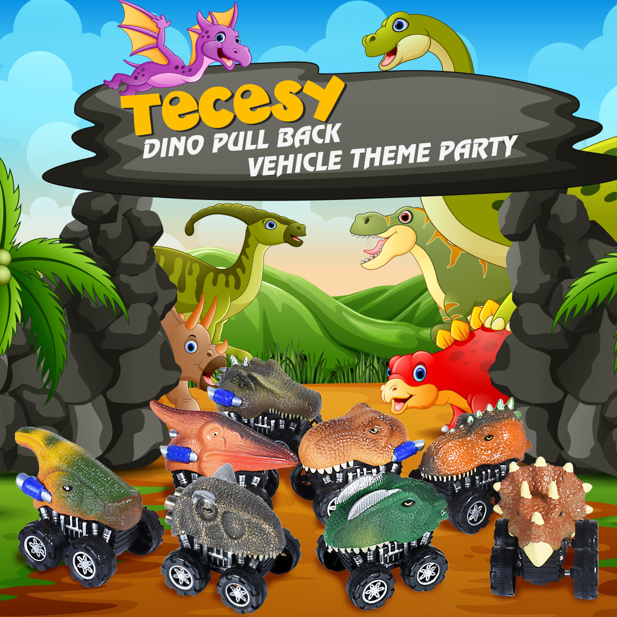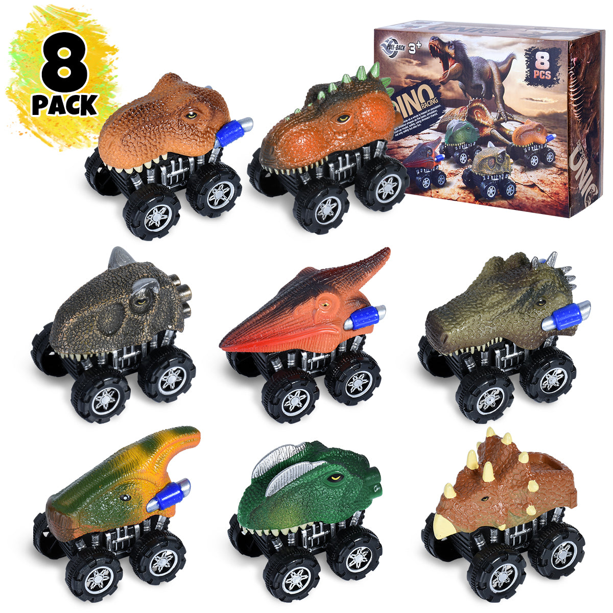 - [8 pieces of Return Dinosaur Car] 8 pieces in total.Dinosaurs come in different shapes and colors, and this 8-piece toy set is perfect for both boys and girls, as well as a great party souvenir or award winner at a dinosaur themed birthday party.