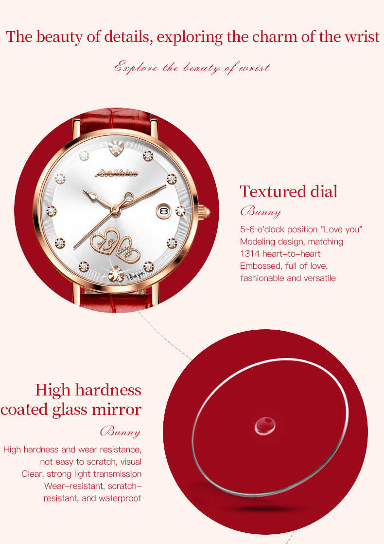 Hot Selling Heart-shaped Pattern Quartz Waterproof Ladies Watch