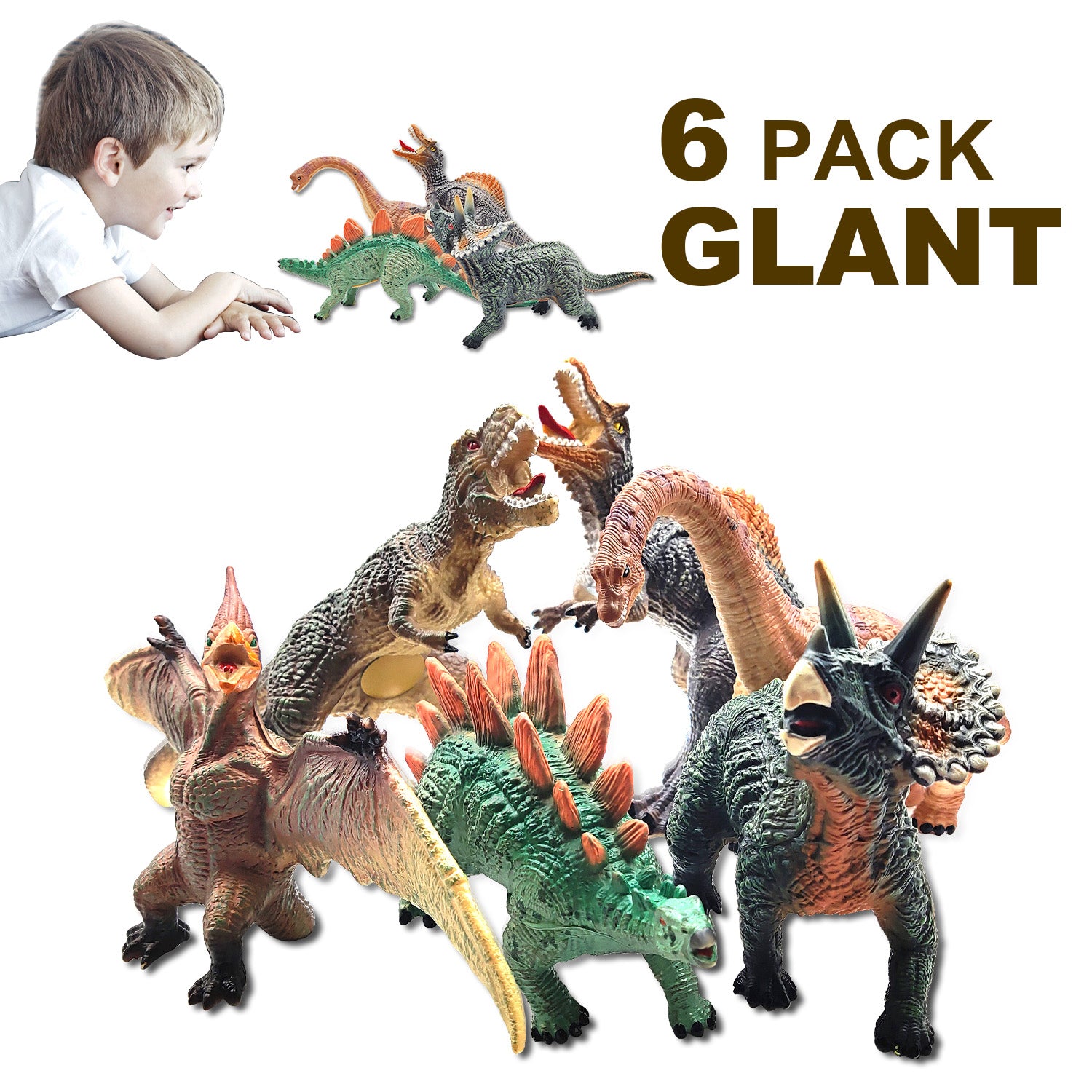 - What's Included :6 different toy sets of dinosaurs, including Tyrannosaurus rex, Triceratops, Dinosaur, Stegosaurus, Brachiosaurus and Pterosaur.The name on the round stomach lid can help children better understand these real and colorful dinosaur action figures and bring endless imagination!