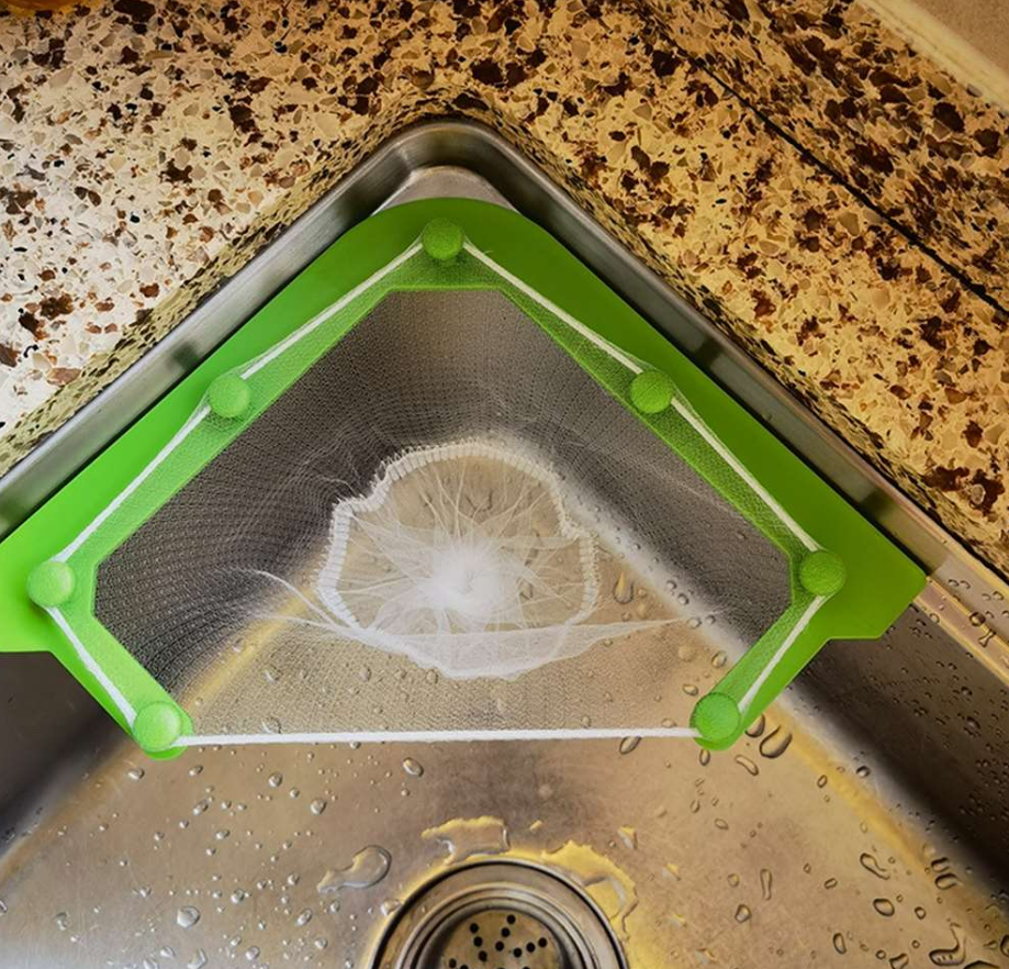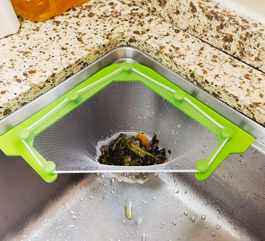 1.Novel Design: The triangle shape design which fully makes use of the space of the sink corner and won't take up additional space inside the sink.