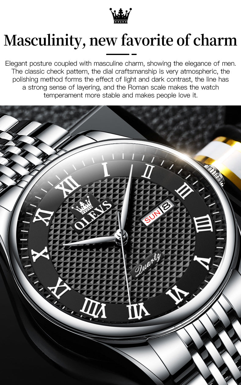 Stylish Elegant Roman Scale Quartz Waterproof Men's Watch