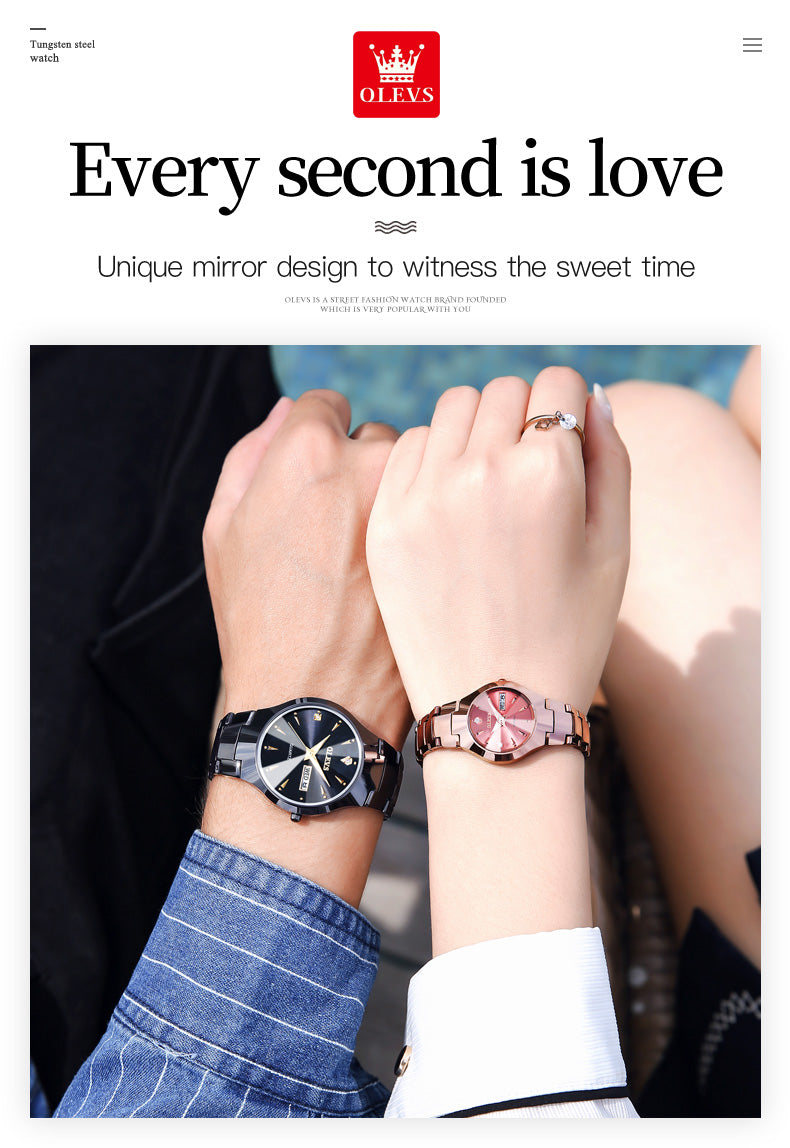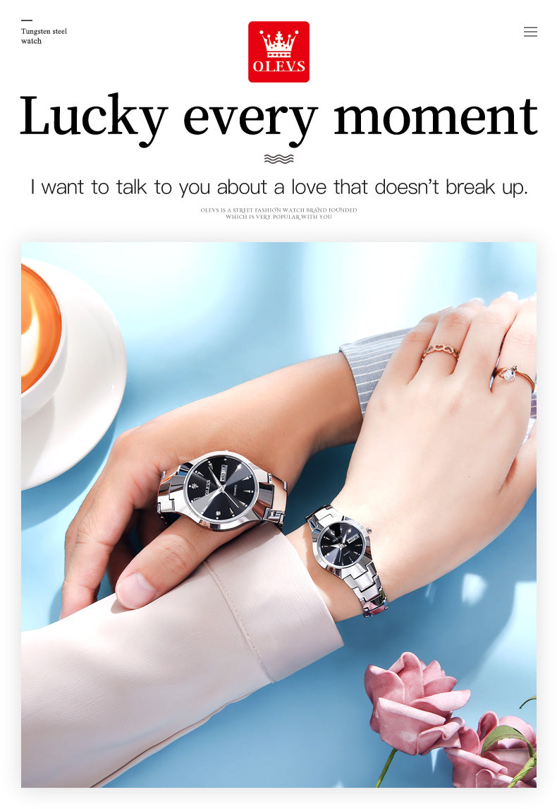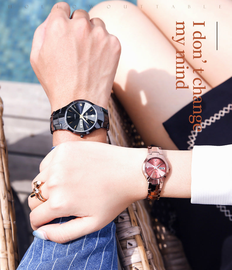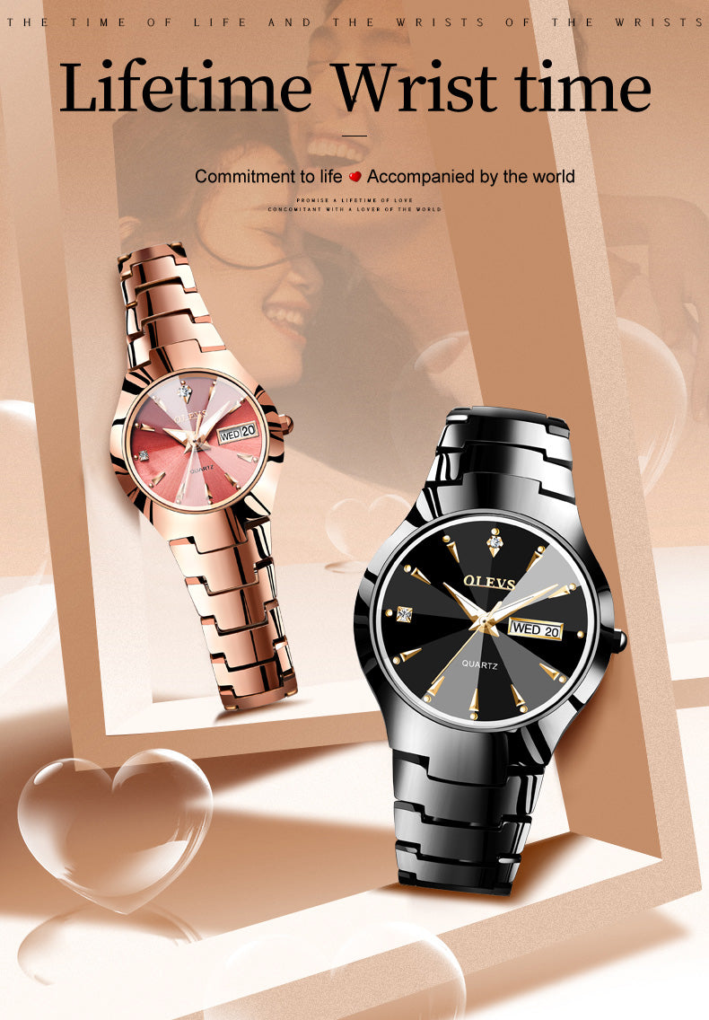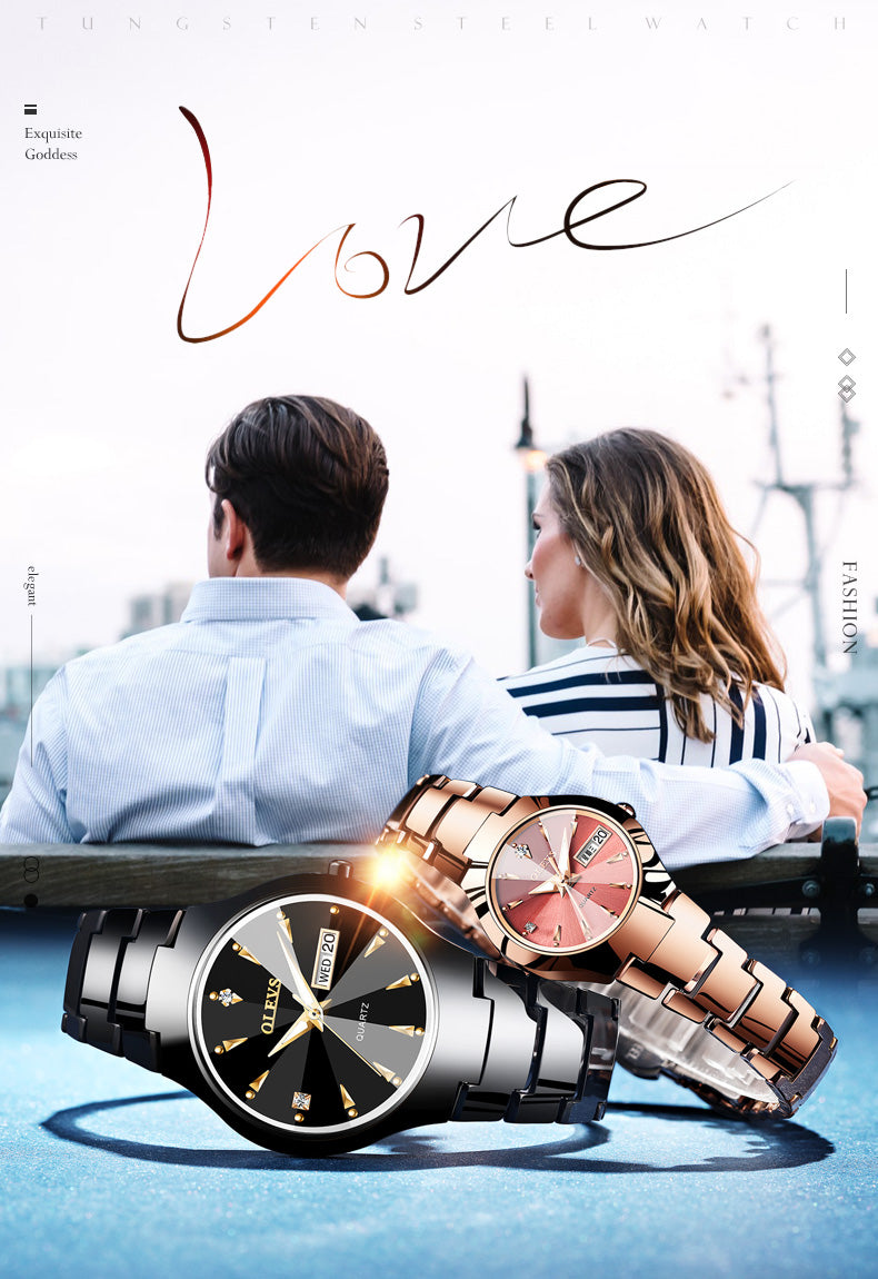 Tungsten Steel Waterproof Luminous Lovers Watch