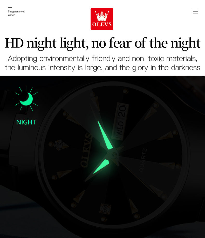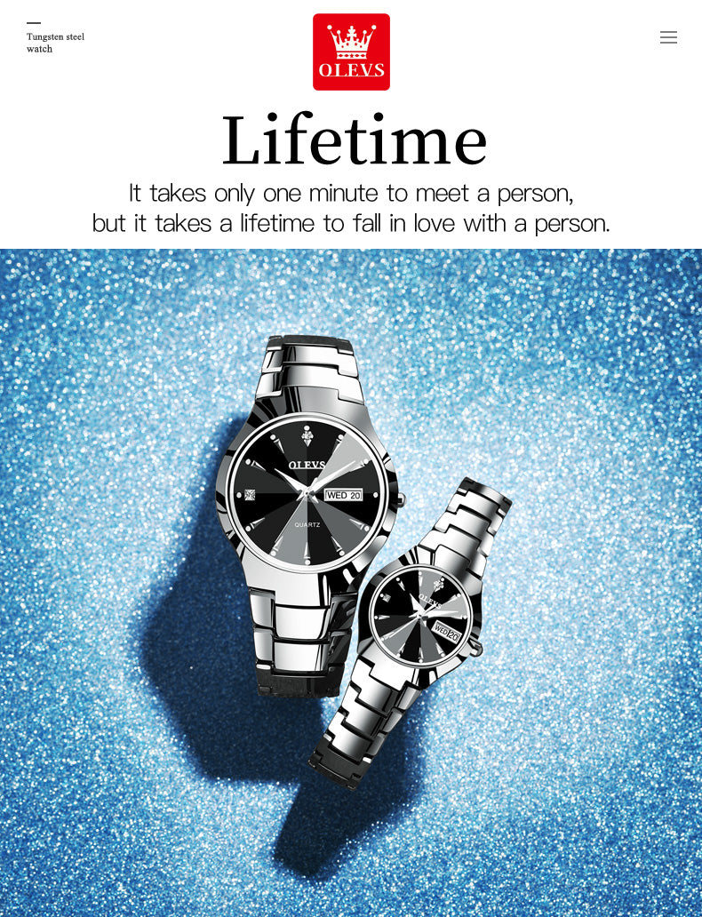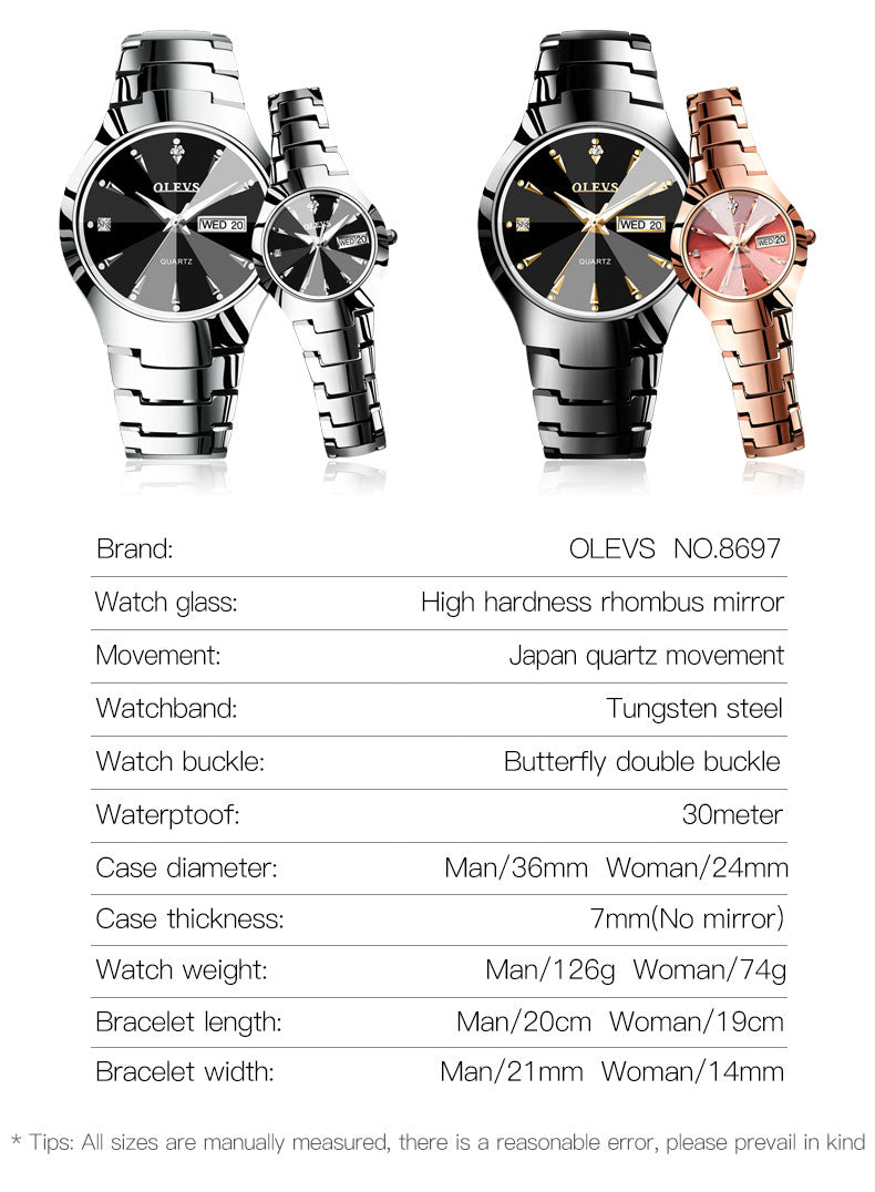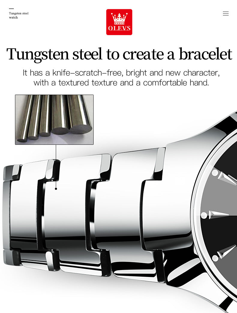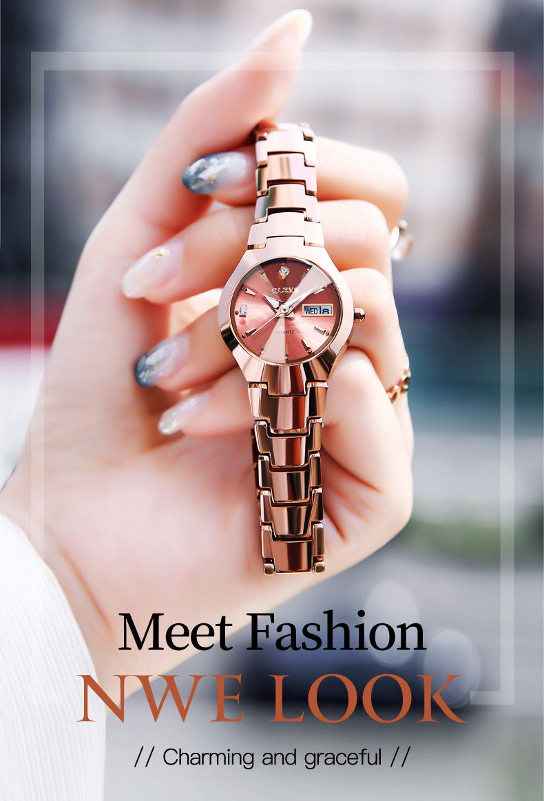 Tungsten Steel Waterproof Luminous Lovers Watch